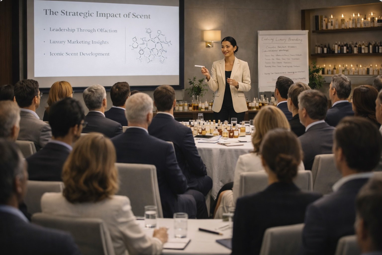 An immersive olfactive workshop designed for corporate audiences, conferences, and executive gatherings. Participants explore fragrance creation while discovering the strategic and emotional impact of scent, including the development of an iconic scent concept.